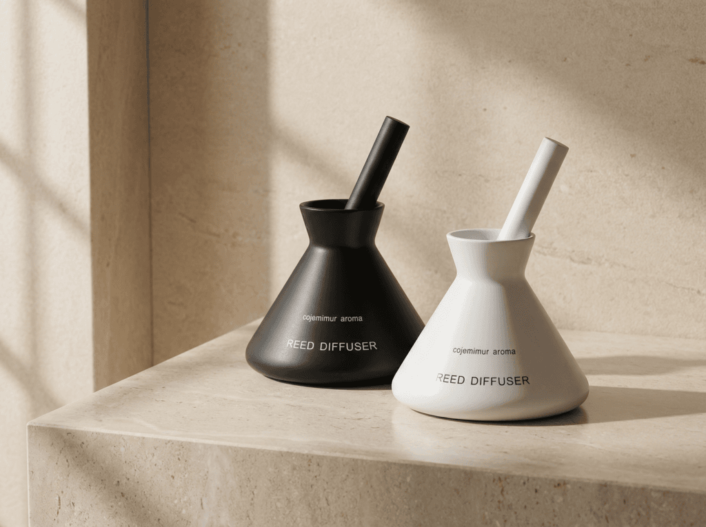 A sculptural diffuser design with bold form, modern contrast, and strong shelf appeal.